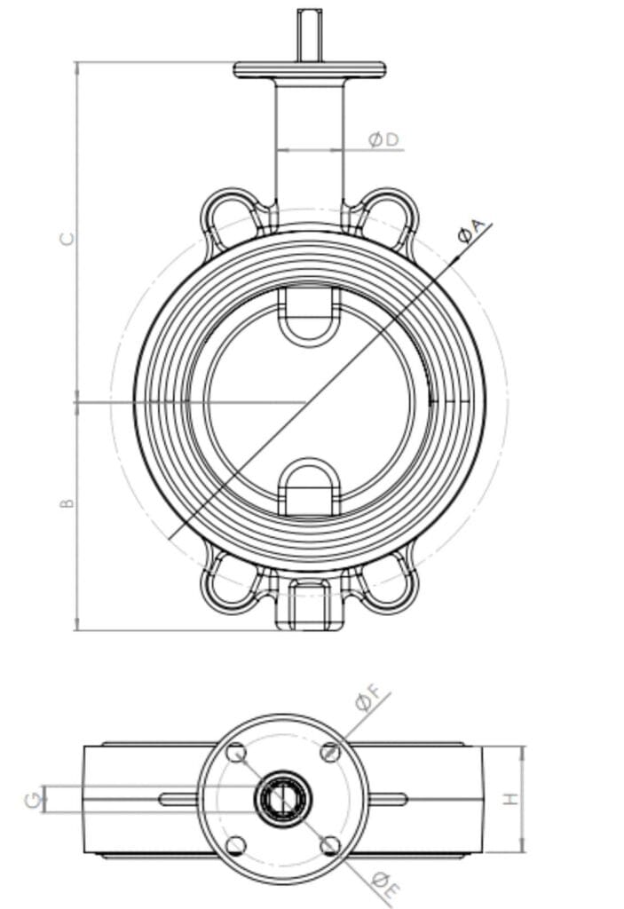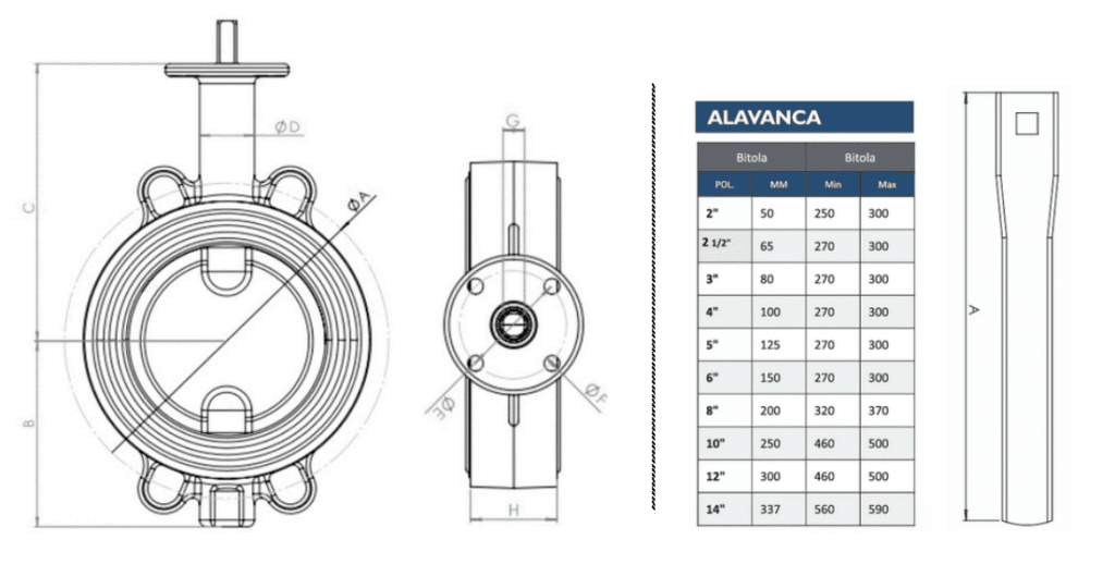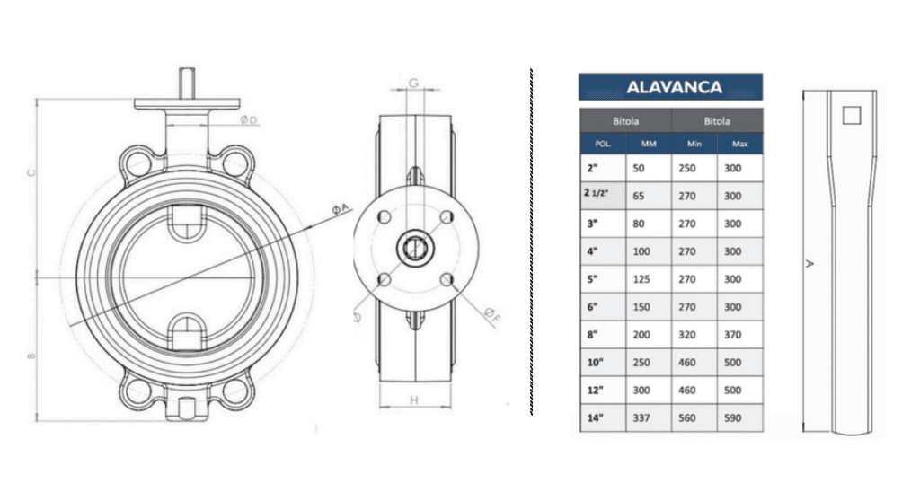 Design Compacto; Nossas válvulas borboleta tipo wafer possuem um perfil fino e compacto, o que economiza espaço na instalação. Além disso, ela é projetada para ser instalada entre flanges existentes na tubulação, sem a necessidade de flanges fundidas ao corpo.